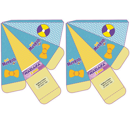 • As mini caixas vão impressas, sem recorte e sem vinco. Não acompanham laço. São enviadas com os furos prontos para facilitar o cliente.